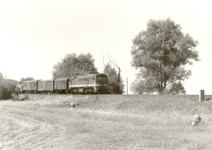 Lok Lz unterwegs. Im Hintergrund der Rhinower
